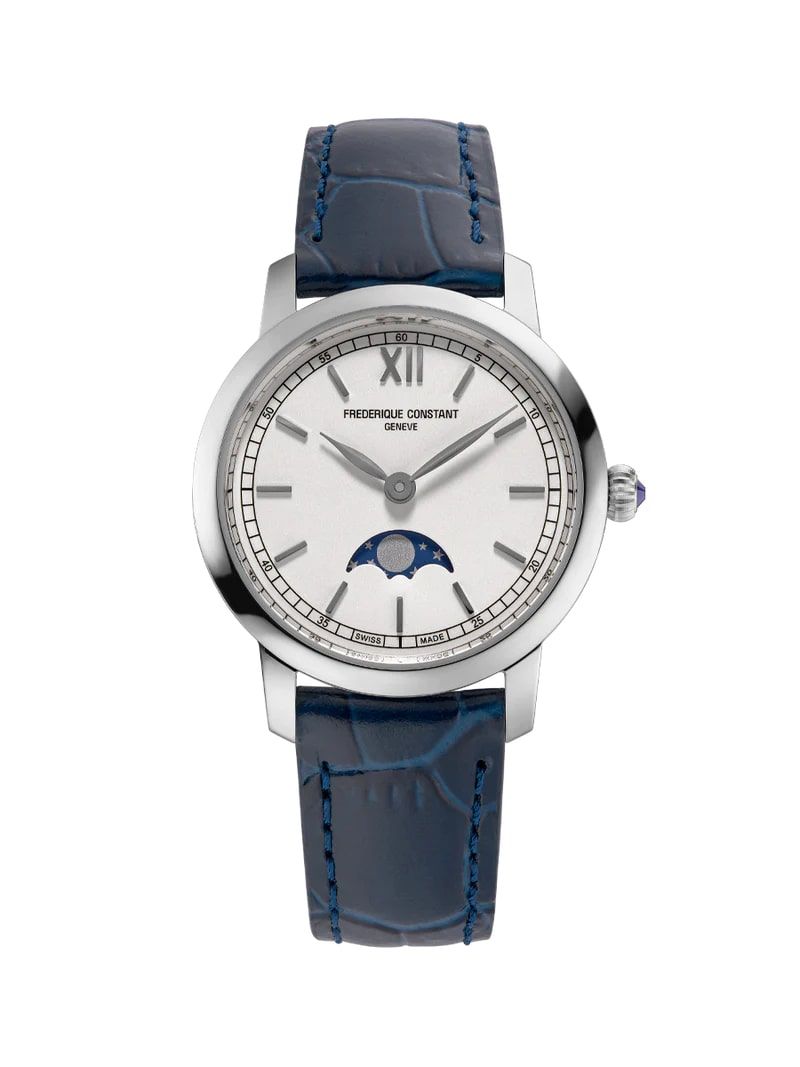 Синий кожаный ремешок не только дополняет эстетику часов, но и обеспечивает мягкость и удобство при ношении. Классическая пряжка надежно фиксирует часы на запястье, а кварцевый механизм калибра FC-220 гарантирует точность хода и минимальную потребность в обслуживании. Функция индикации даты добавляет практичности, а водонепроницаемость 3 Bar защищает от брызг и легкой влаги, что делает модель подходящей для активного образа жизни.